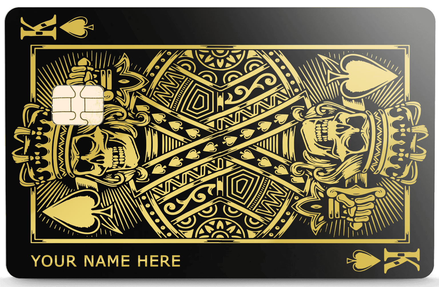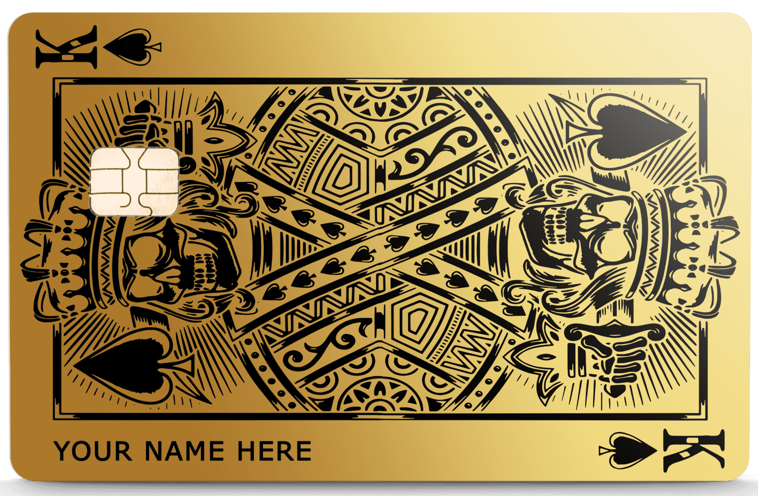 כרטיס מתכת בעיצוב מלך הפיק עיצוב עוצמתי שמשלב בין יוקרה לאומנות גרפית מרהיבה. רקע מוזהב עם איור מרהיב של מלך הפיק בסגנון דרמטי, המעניק לכרטיס מראה ייחודי ונועז. עשוי מתכת איכותית עם גימור פרימיום, הכרטיס הזה הוא הצהרה של סטייל וביטחון עצמי בכל שימוש.